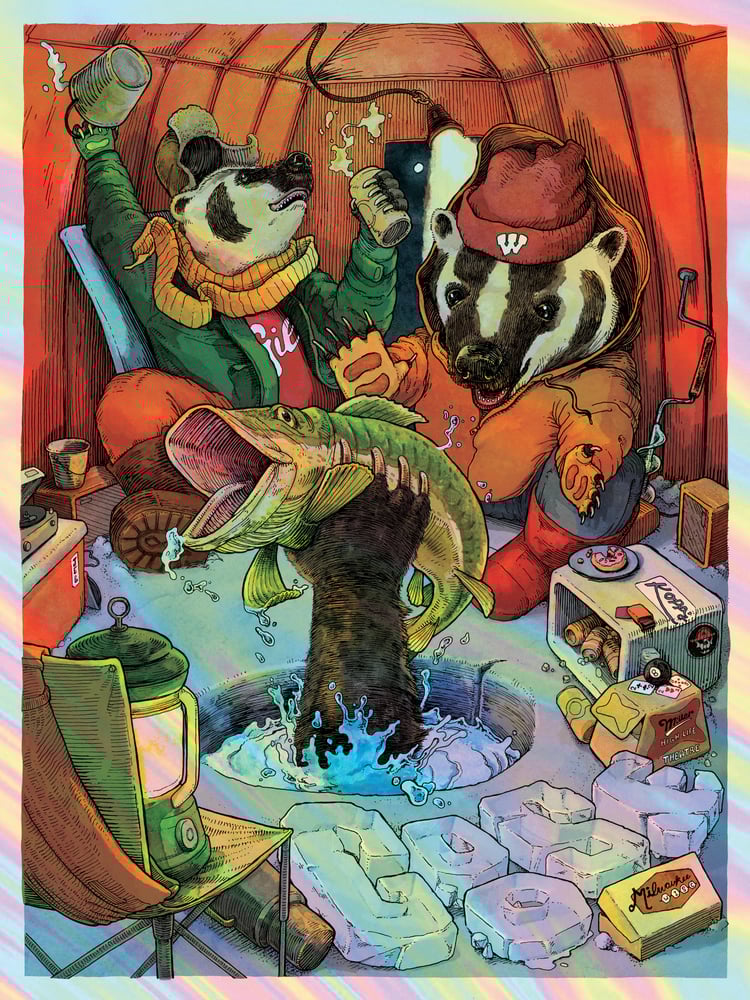 Here is my poster for the band GOOSE and their show at Miller High Life theater in Milwaukee, WI on Feb 8th, 2025. I was fortunate enough to have my friend Jes Seamans color this piece, after I had illustrated it. Our friends Dan Black and Rebecca Sunde at LandLand in Minneapolis did the printing!