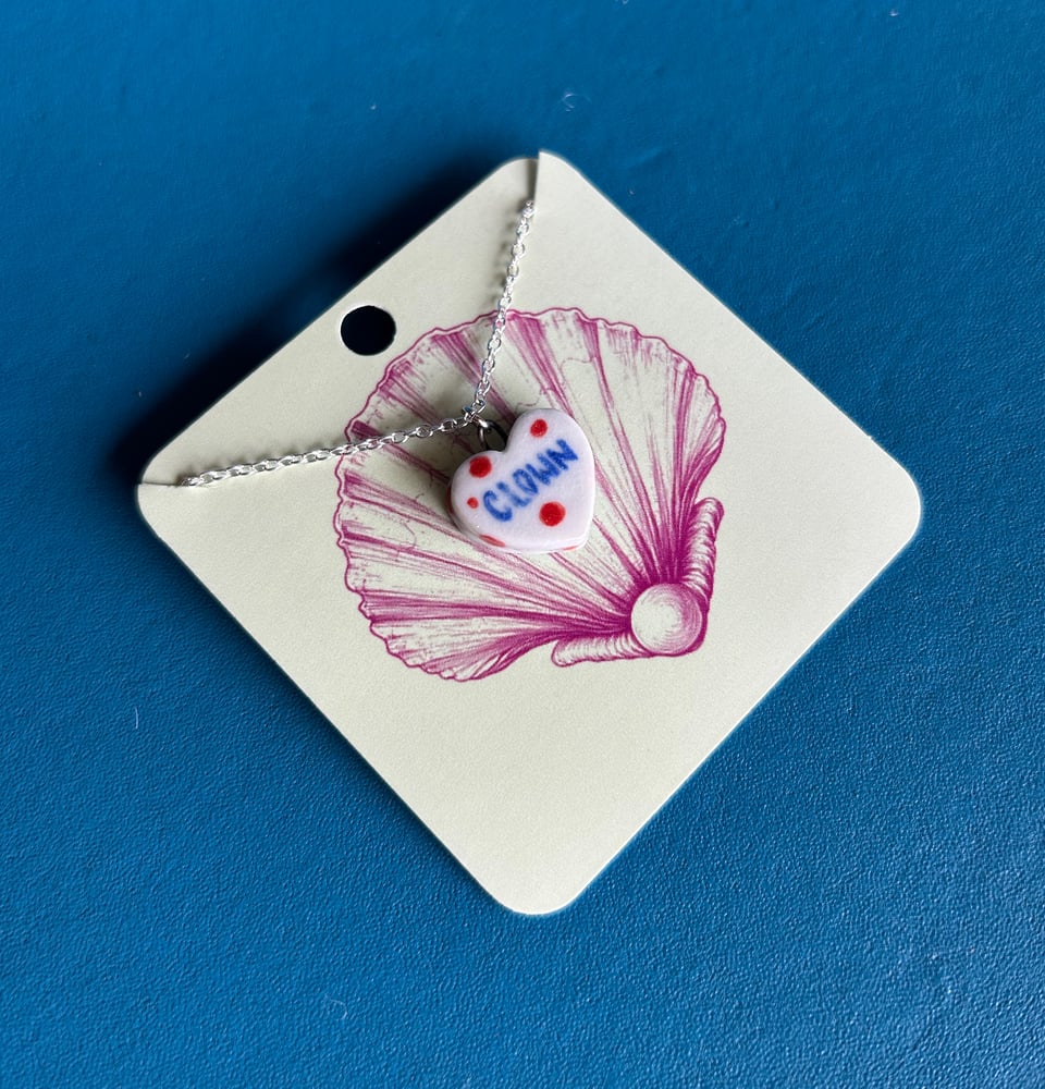 This is a handmade and hand painted ceramic pendant that my wife and I made together! If you prefer a specific color chain (options are silver or gold) please let us know in the order notes.
