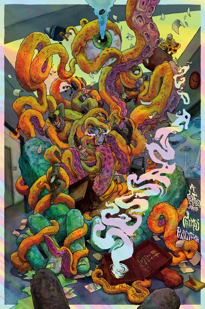This is my poster for the Sessanta show (A Perfect Circle / Puscifer / Primus) in Las Vegas, NV on April 25th. These are BIG BOYS - 24"x36", just a heads up! I was lucky enough to be able to work with the great Jes Seamans who colored this piece beautifully!