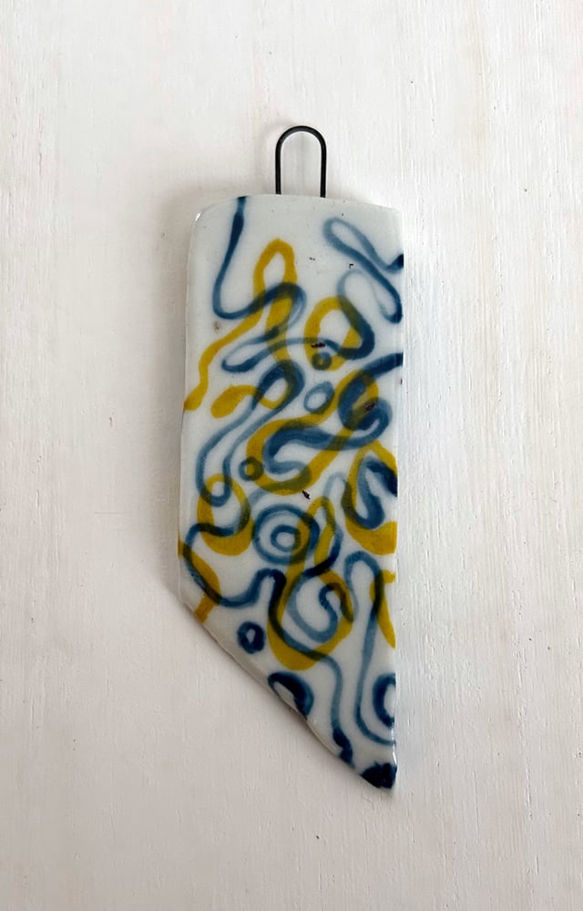 This is a ceramic piece I made that could be worn or hung or placed on a desk to gather dust. It's truly up to you. I just like it. I hope you do too.