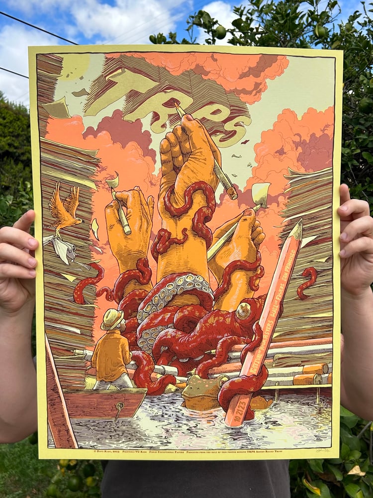 This is the poster I was able to do for the Festival of Rock Posters event in Golden Gate Park, October 21st 2023. There are three editions, this is the version on Banana Split paper. The event had their own for sale - day of, these are my personal APs that were left over.